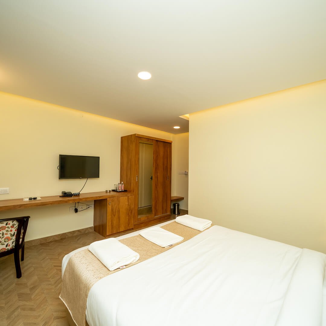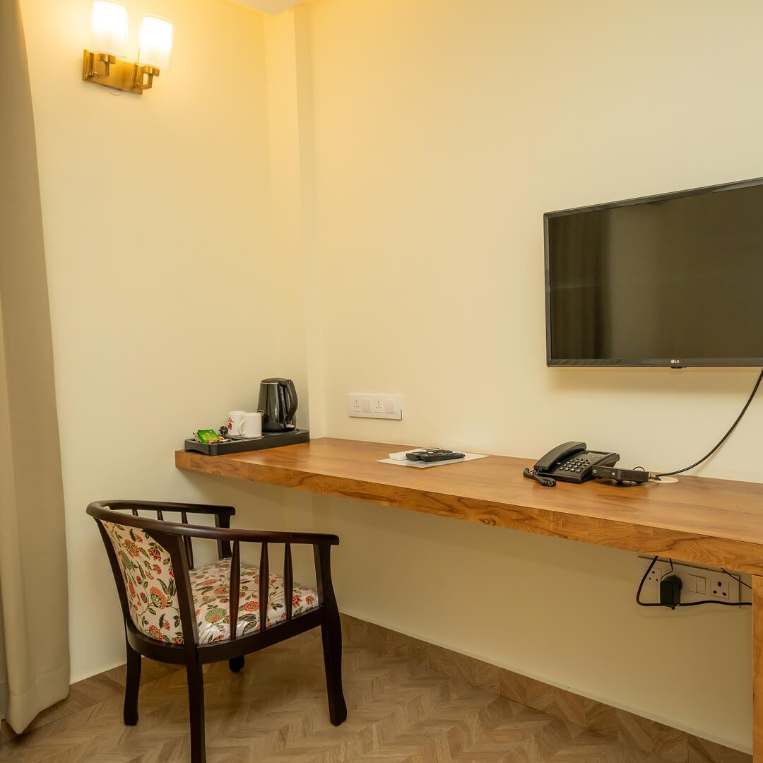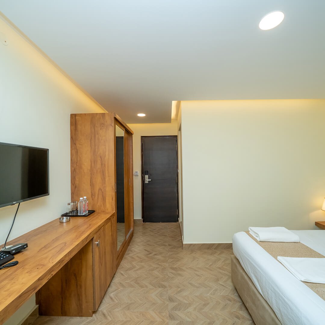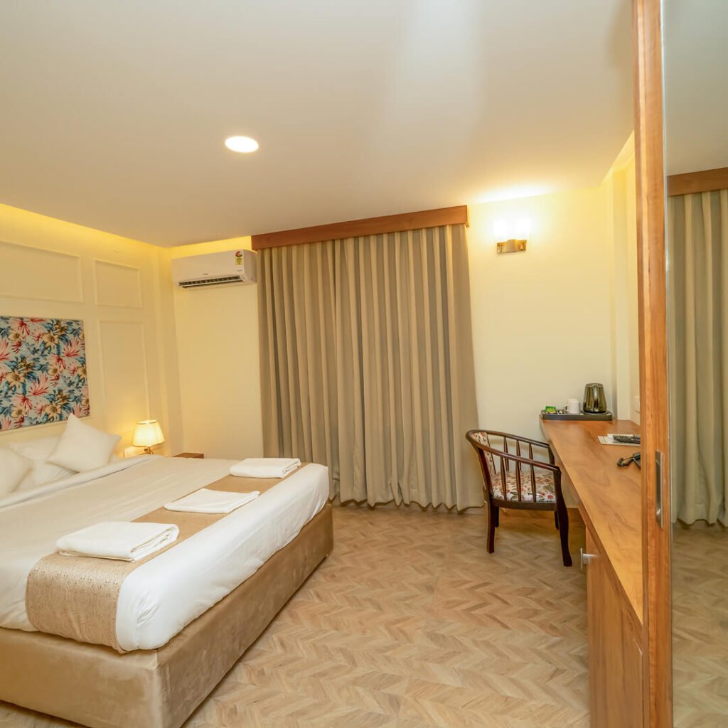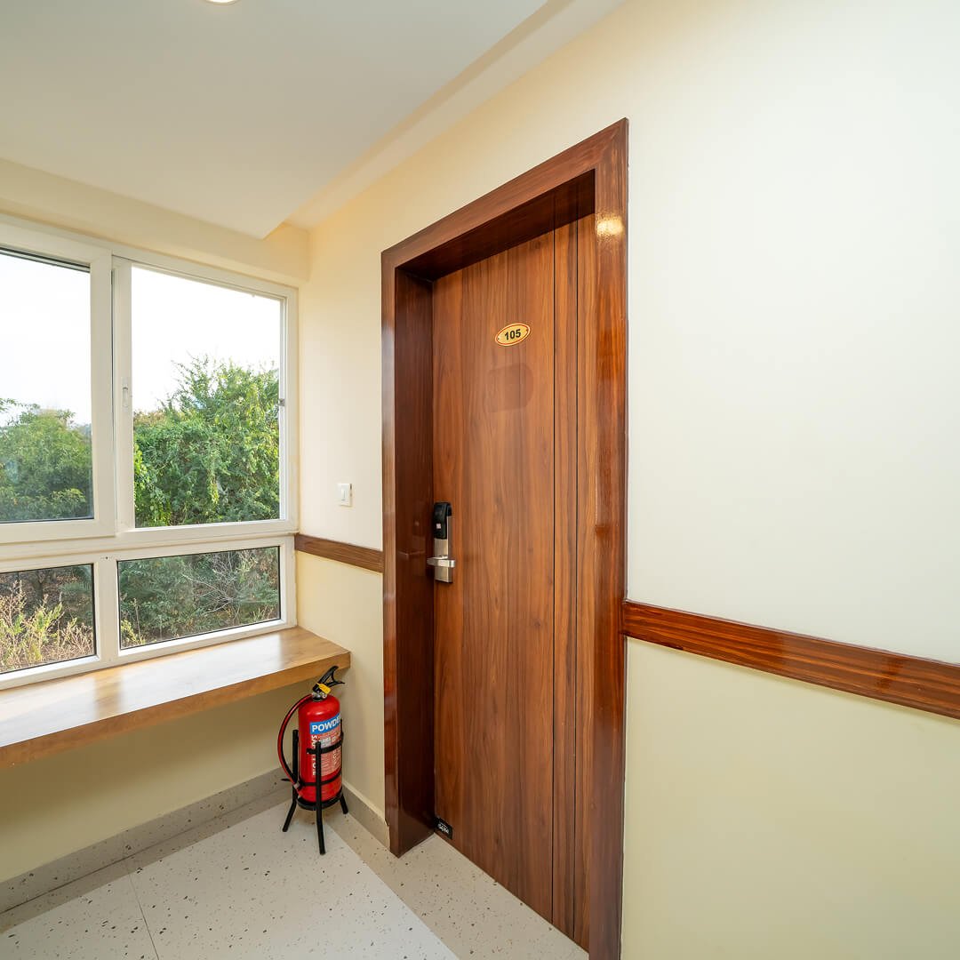 Comfortable rooms with AC, Free Wi-Fi, Cable TV, Drinking Water, 24/7 Reception, Housekeeping, Laundry, Parking, CCTV Security, and an in-house Bar & Restaurant.